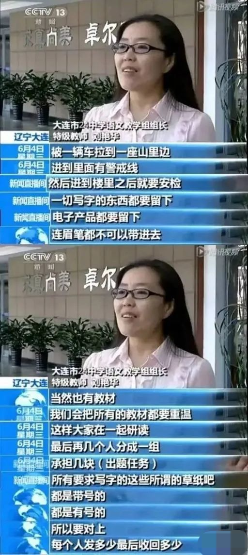 大連市24中學(xué)語(yǔ)文教學(xué)組組長(zhǎng)劉艷華老師談起被抽調(diào)參與高考命題,最切身的感受是整個(gè)抽調(diào)過(guò)程保密工作非常嚴(yán)謹(jǐn):“在出發(fā)的前一天,只得到通知要出差,對(duì)自己真正要肩負(fù)的使命一無(wú)所知?!?strong>“被一輛車(chē)?yán)揭蛔嚼锩?,進(jìn)到里面有警戒線 ?!?/strong>