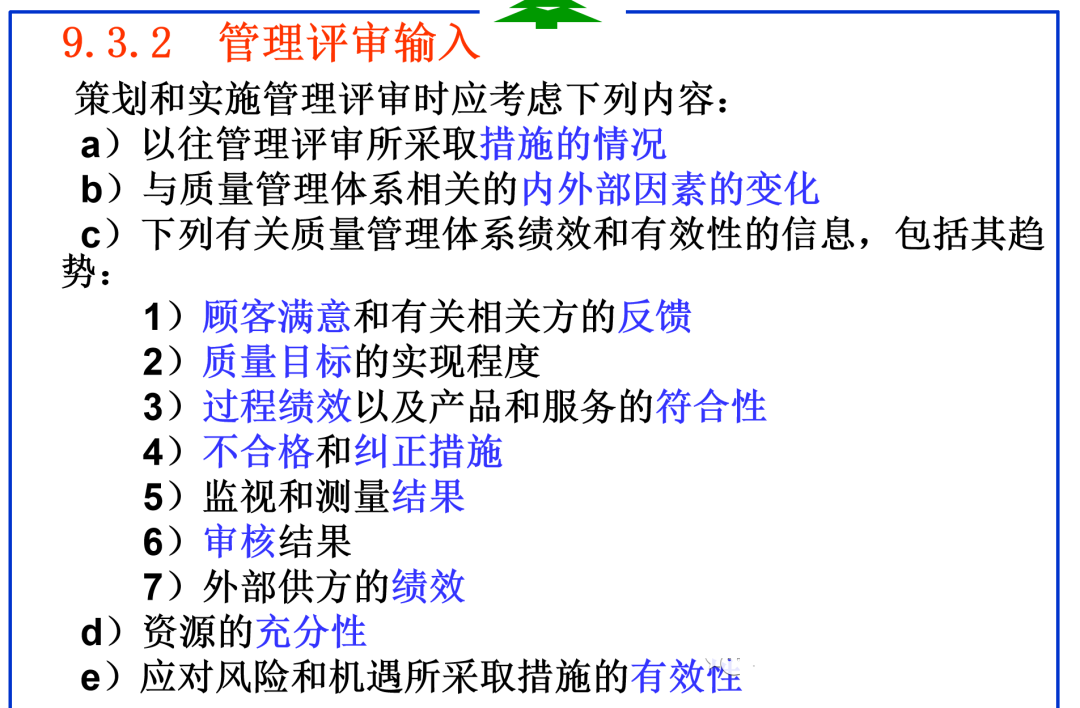 6. 可能影質(zhì)量管理體系的各種變化;質(zhì)量管理體系運行狀況,包括質(zhì)量管理方針、目標的適宜性和有效性;