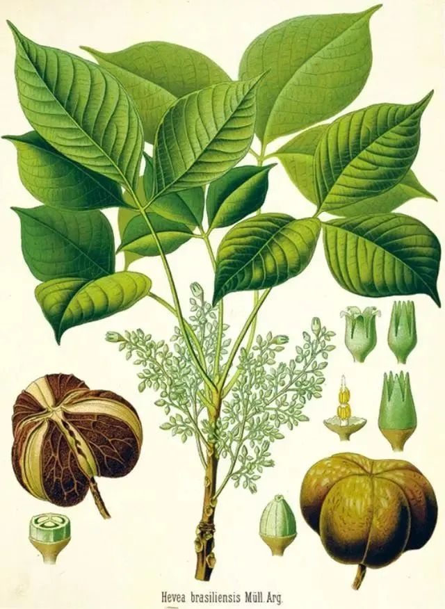 19世紀繪有巴西三葉橡膠樹的科學插圖