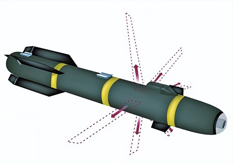 “地獄火”導(dǎo)彈示意圖。該導(dǎo)彈擁有惰性導(dǎo)航并攜帶自行部署的刀片(虛線部分),能殺死目標(biāo)而不會造成附帶損害