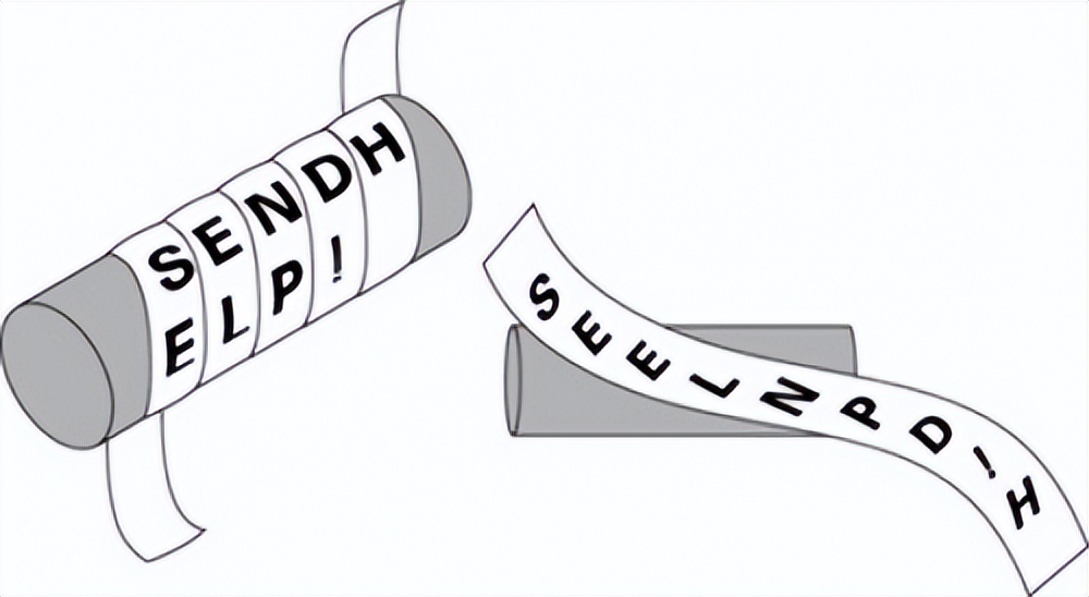 重要的情報(bào)傳遞任務(wù)交給你,卻只給你一根木棒、一條長帶和一支筆,怎么留言更安全?公元前5世紀(jì),聰明的斯巴達(dá)人想到了“密碼棒”這個(gè)好辦法。他們用一條狹長的皮革或者羊皮紙帶,一圈圈地纏繞在一根直徑均勻的木棒上,然后在每一圈帶子上寫下字母,橫著連讀起來就是完整信息。當(dāng)帶子被解開時(shí),上面就是一堆毫無邏輯關(guān)系的字母,哪怕落入敵手也不會(huì)泄密。但是,當(dāng)它再次被纏繞到相同直徑的木棒上時(shí),就能輕松解密了。