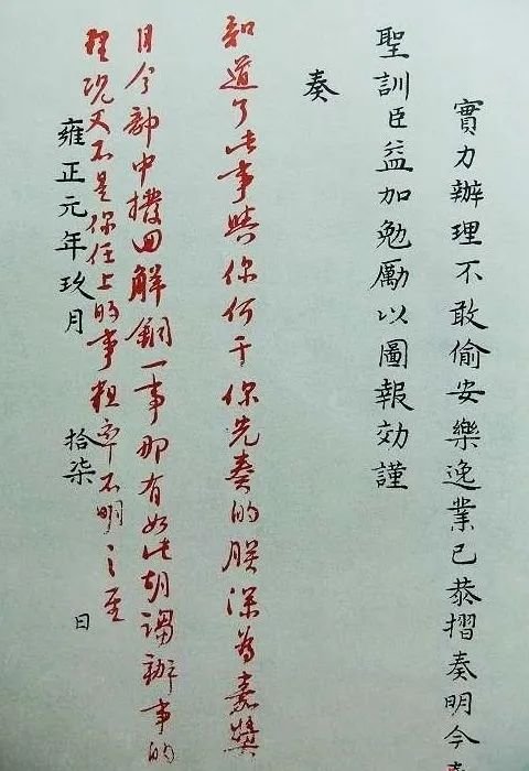 首先,雍正始終堅(jiān)持親自閱看奏折,“各省文武官員之折,一日之間,嘗至二三十件,多或至五六十件不等,皆朕親自覽閱批發(fā),從無(wú)留滯,無(wú)一人贊襄于左右,不但宮中無(wú)檔可查,亦并無(wú)專司其事之人?!?/span>