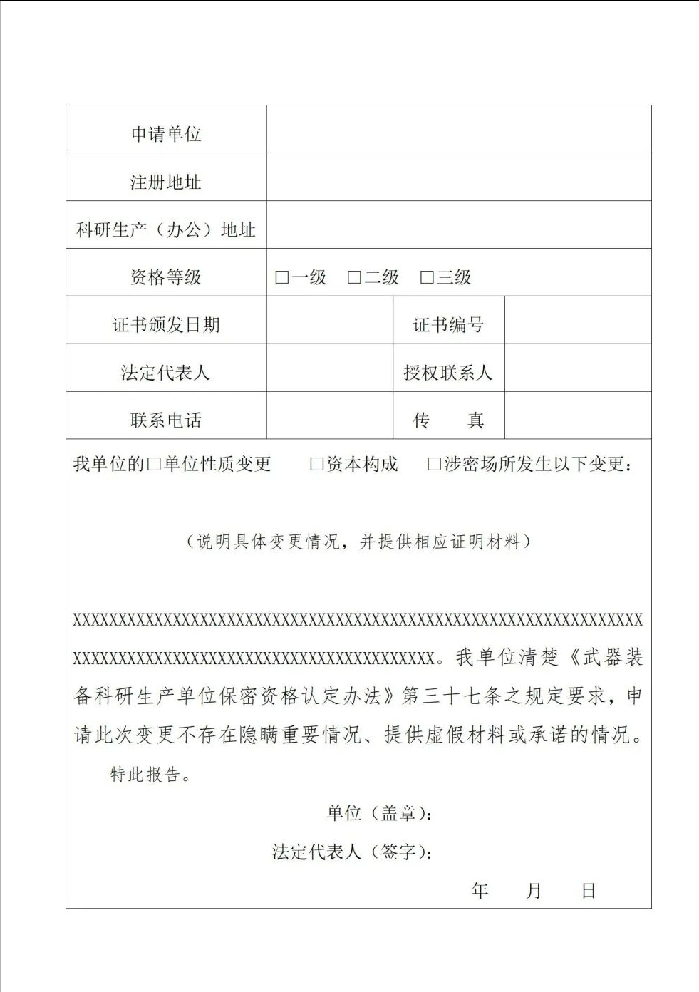 附件:軍工保密資格事項(xiàng)變更報(bào)告