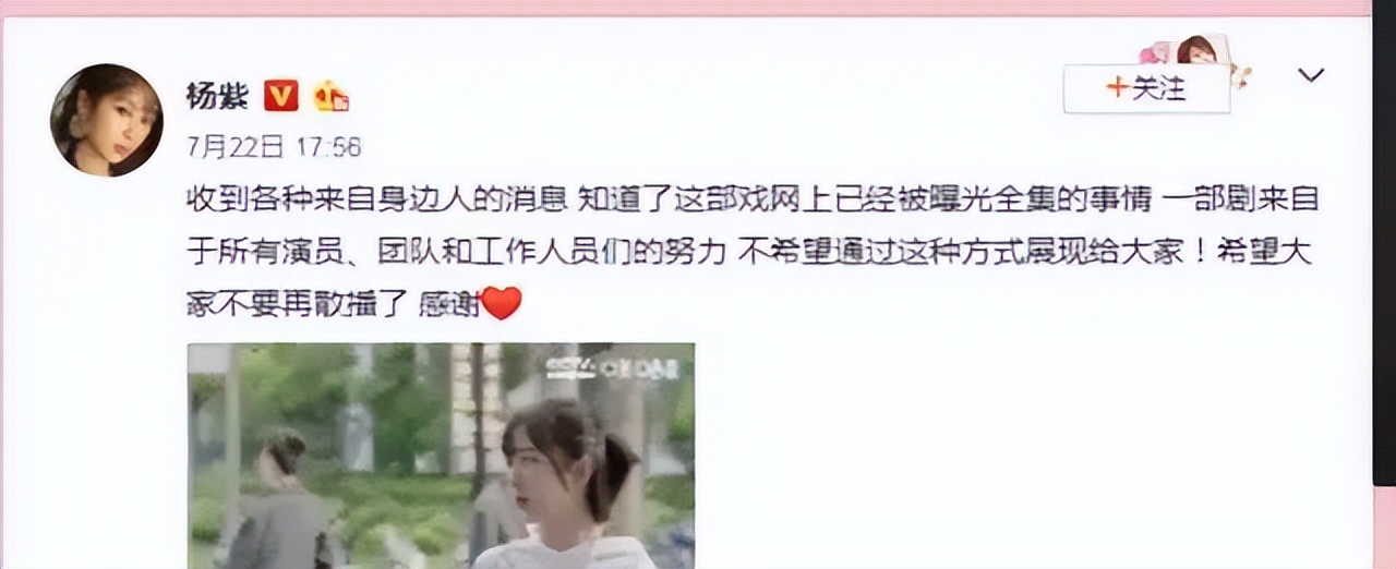 片源泄露后,該劇主演發(fā)文稱:“一部劇來自于所有演員、團(tuán)隊(duì)和工作人員們的努力,不希望通過這種方式展現(xiàn)給大家”,并呼吁觀眾不要散播