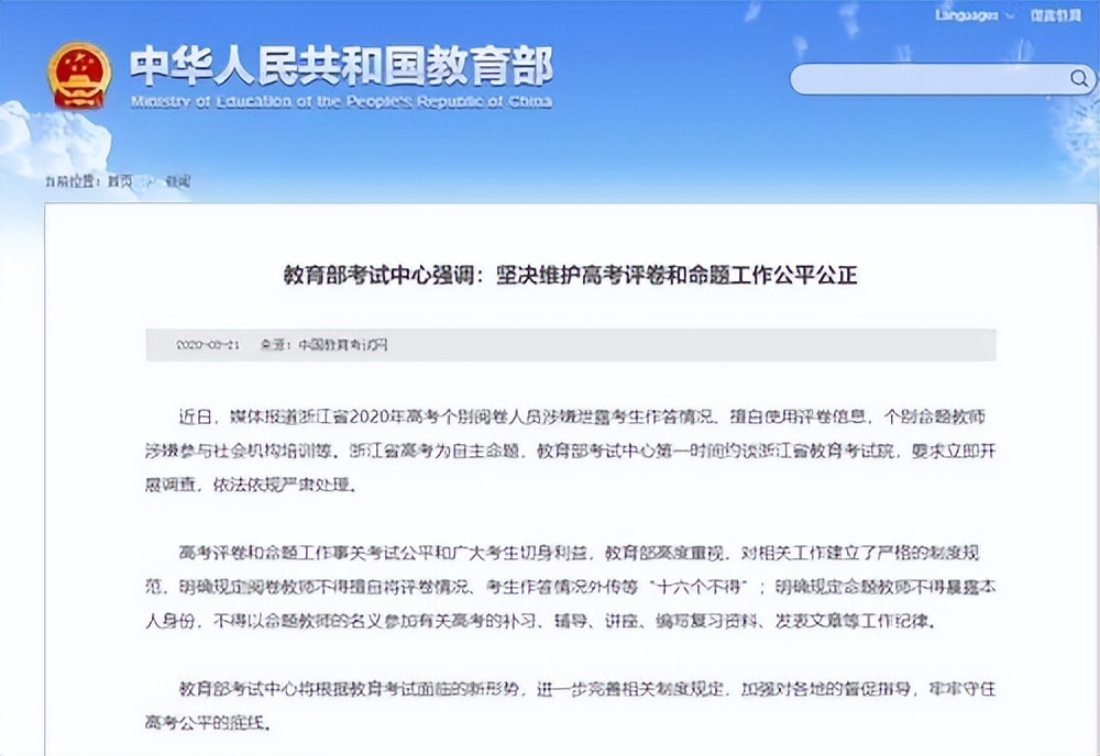 事件發(fā)生后,引發(fā)全國輿論廣泛關(guān)注,教育部考試中心特別強(qiáng)調(diào):堅(jiān)決維護(hù)高考評卷和命題工作公平公正
