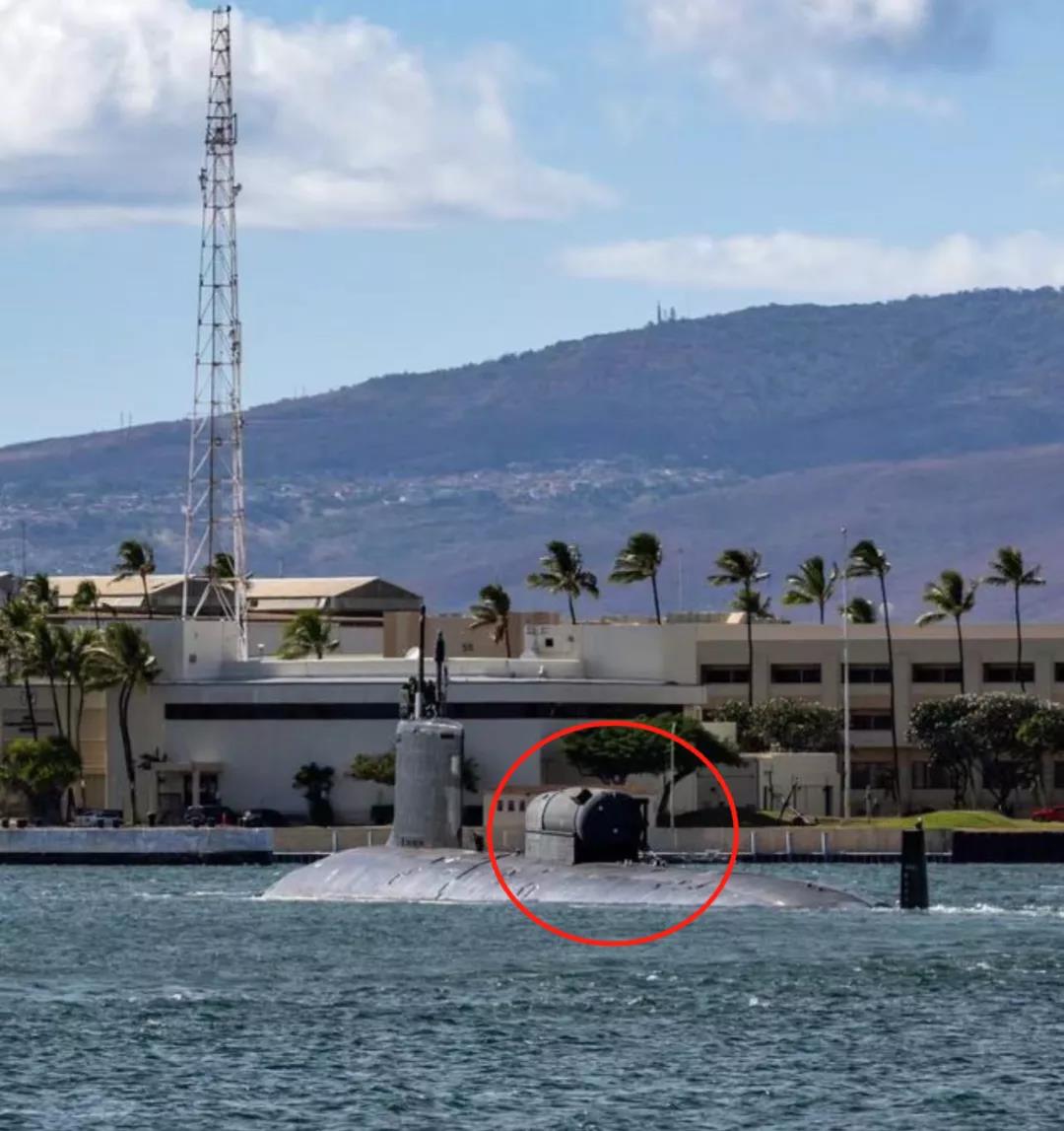 這次SSN 777核潛艇有個特殊的任務(wù),搭載了DDS干式甲板換乘艙,這說明該潛艇將在南海進行蛙人滲透演練,或者派出蛙人進行離岸戰(zhàn)術(shù)活動,總之這不是一個好消息。潛艇干甲板隱蔽艙(DDS)是安裝在潛艇上用來運輸蛙人及載具的一種特殊艙體,通常安裝在潛艇指揮室圍殼后方,與潛艇有特殊通道連接,蛙人可通過通道進出潛艇,并能與蛙人載具一同離開甲板干艙去遂行任務(wù)或撤回。