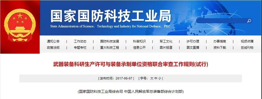 第一條 為簡(jiǎn)化準(zhǔn)入程序,規(guī)范武器裝備科研生產(chǎn)許可與裝備承制單位資格聯(lián)合審查工作,制定本規(guī)則。