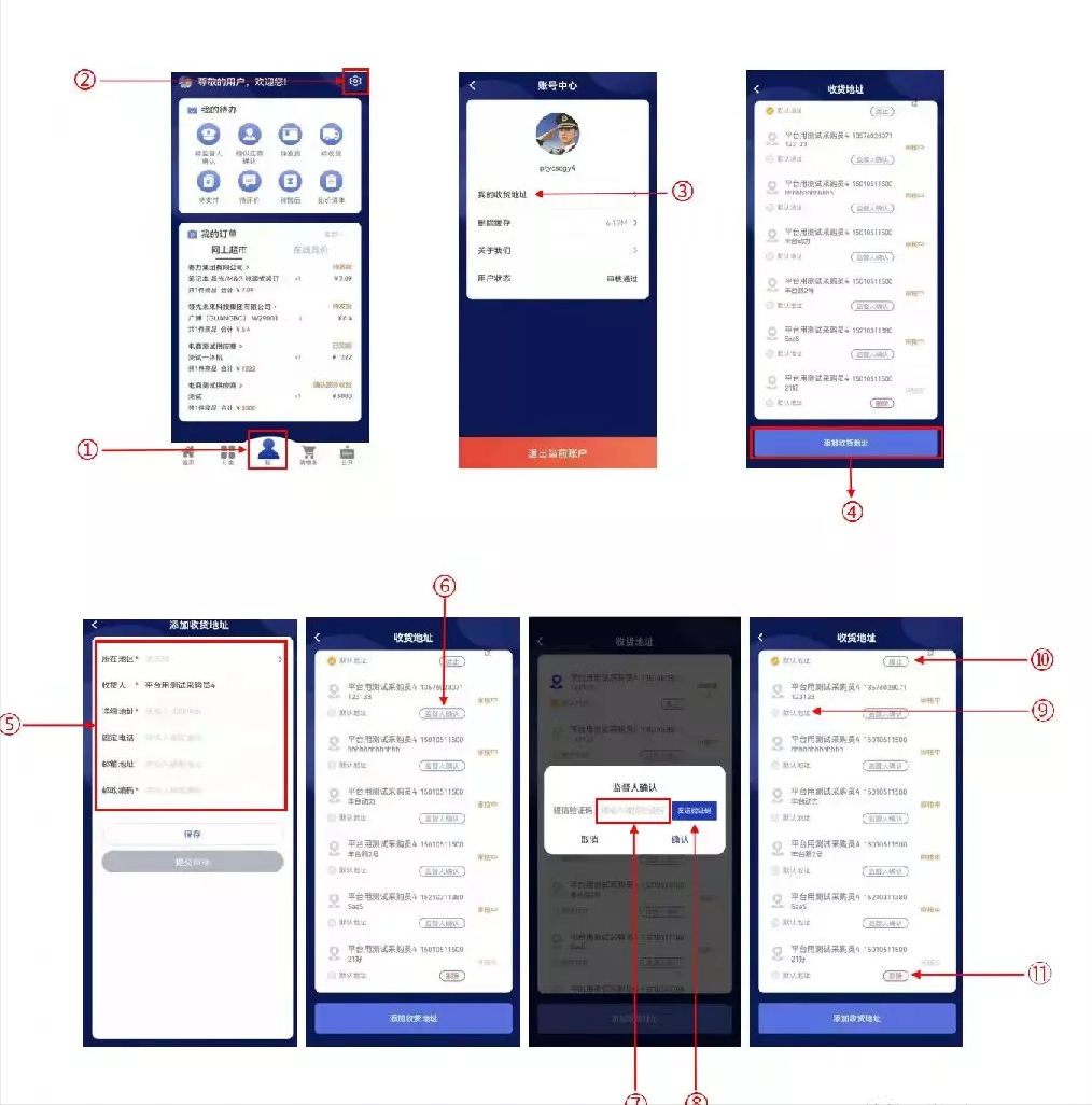 ⑨【設(shè)置默認(rèn)地址】地址審核通過后,在收貨地址界面,點(diǎn)擊地址下方的“默認(rèn)地址”按鈕,可將該地址設(shè)置為默認(rèn)收貨地址。未通過審核的地址無法被設(shè)置為默認(rèn)收貨地址。