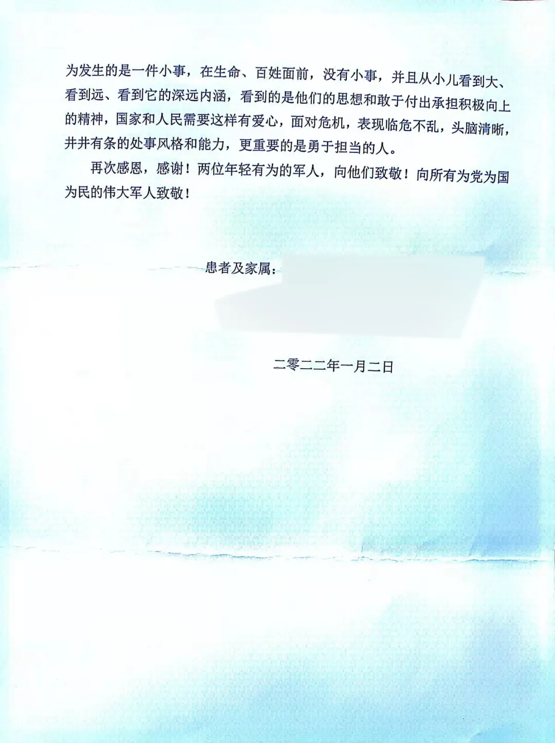 隨即制作錦旗到部隊當面致謝
