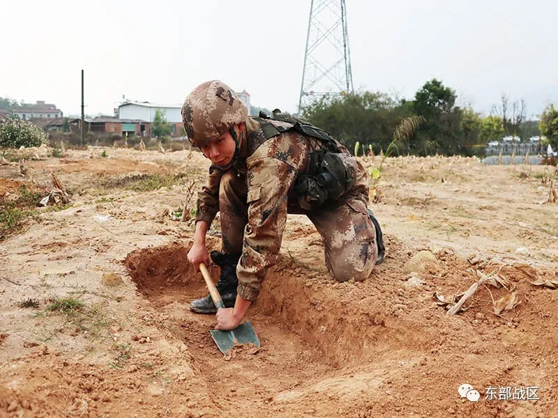 ▲戰(zhàn)士正在構(gòu)筑單兵掩體。