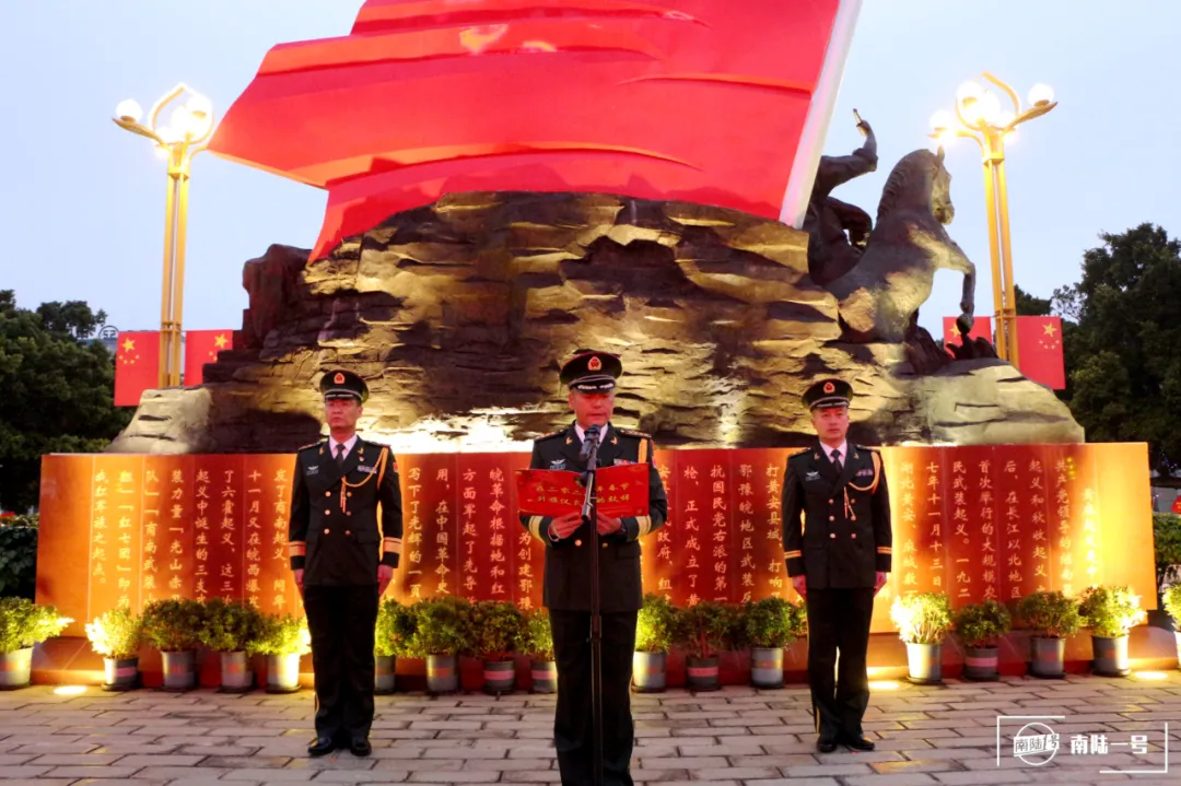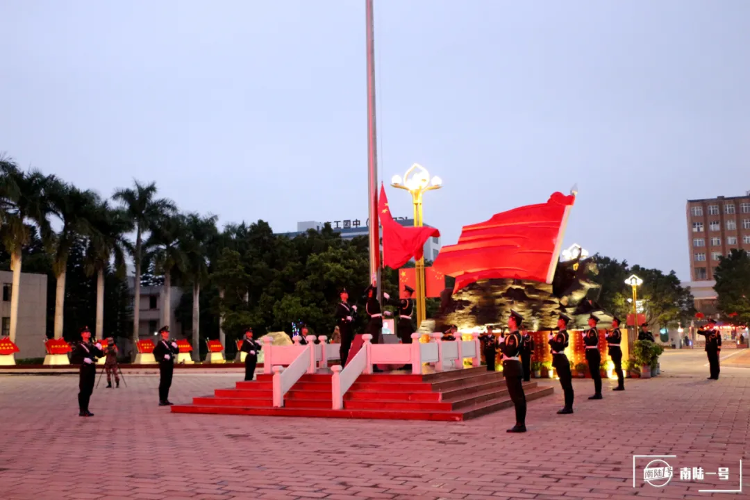 上午7時許,在雄壯的國歌聲中,該旅官兵軍容嚴整、整齊列隊,齊聲高唱國歌,舉起右手莊嚴敬禮,注視著鮮艷的五星紅旗冉冉升起。