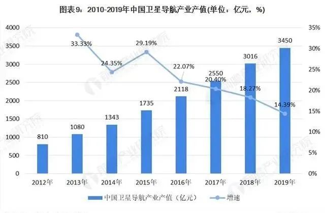 經(jīng)過多年的啟蒙和培育階段,我國北斗衛(wèi)星導(dǎo)航產(chǎn)業(yè)已經(jīng)取得一定進(jìn)展,目前已初具規(guī)模。根據(jù)中國衛(wèi)星導(dǎo)航定位協(xié)會在2019年5月發(fā)布的《中國衛(wèi)星導(dǎo)航與位置服務(wù)產(chǎn)業(yè)發(fā)展白皮書(2020)》顯示,2019年我國衛(wèi)星導(dǎo)航與位置服務(wù)產(chǎn)業(yè)總體產(chǎn)值達(dá)3450億元,較2018年增長14.4%。其中與衛(wèi)星導(dǎo)航技術(shù)研發(fā)和應(yīng)用直接相關(guān)的產(chǎn)業(yè)核心產(chǎn)值為1166億元,在總產(chǎn)值中占比為33.8%。