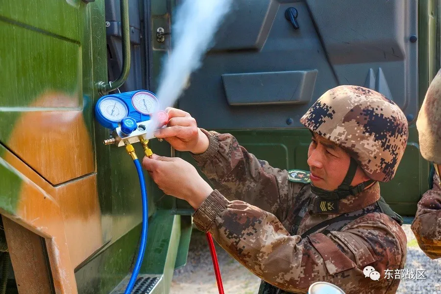 ▲老兵帶新兵排查車輛故障。