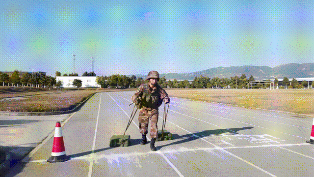 20×4、50斤彈藥箱負重組合練習,采用“拉、提、抱、扛”四種姿勢搬運重物,考驗官兵在實戰(zhàn)中搬運物資的能力,重點模擬官兵抵達戰(zhàn)場前線時建立戰(zhàn)斗工事的情景。