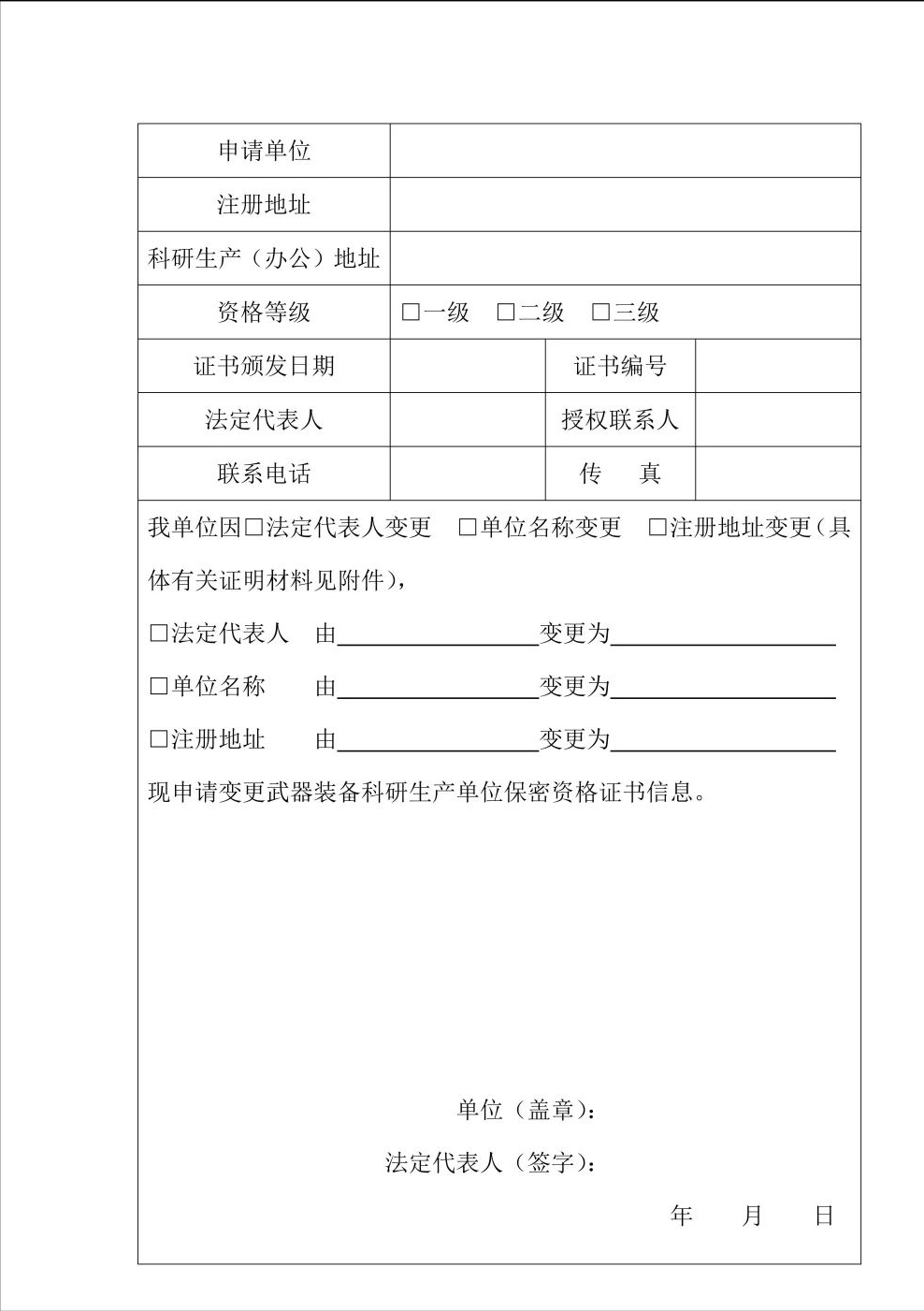 - 《保密資格證書變更申請書》及相關附件材料需提交紙質(zhì)版2份,電子版光盤1張。